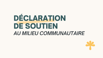 Signature de la déclaration «Il n’y a pas d’égalité de genre sans les femmes trans» au côté de centaines d’organismes communautaires à travers le pays. Cette mobilisation, initiée par le Centre canadien de la diversité des genres + de la sexualité demande au gouvernement, à la société civile et à toutes les féministes de s’unir pour protéger le bien-être des personnes trans, en particulier des femmes trans, y compris les femmes trans de couleur.
