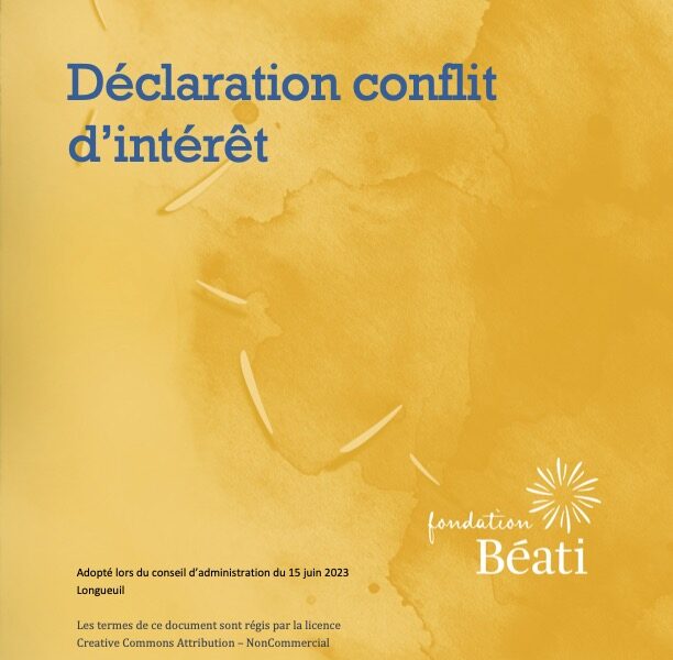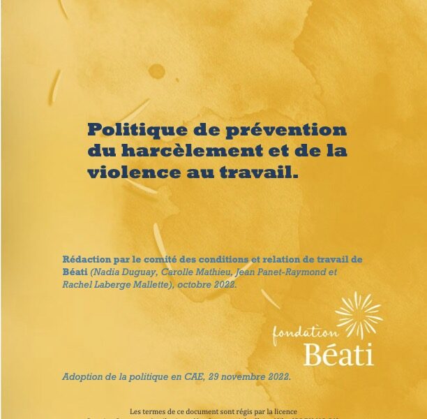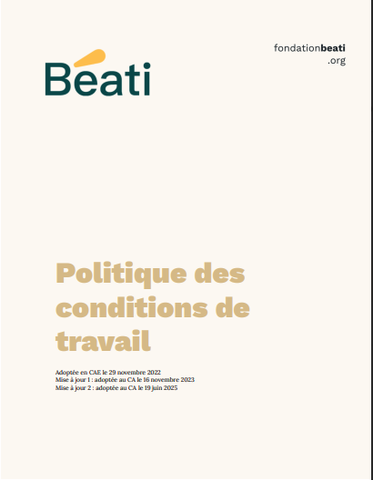 Nous croyons que la transparence et le partage des savoirs sont essentiels pour renforcer les pratiques des organismes à but non lucratif, des collectifs et des fondations. C’est dans cet esprit que nous avons créé la Boîte-à-Politiques : un espace évolutif où nous mettons à disposition nos politiques internes, cadres directeurs et outils en accès libre, avec l’engagement de libérer tout ce qui est possible.